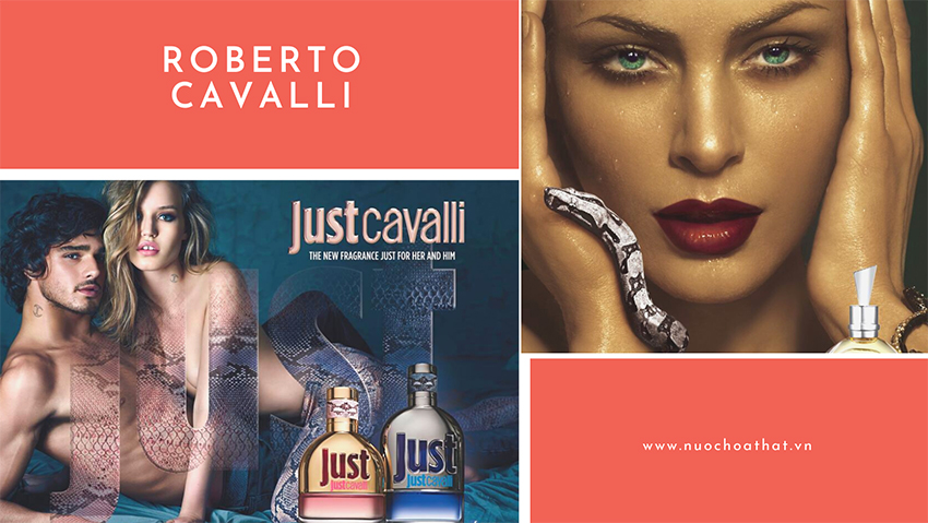 Roberto Cavalli chinh phục làng mốt bằng phong cách hoang dã, quyến rũ cũng chọn rắn làm biểu tượng linh vật. Hoa tiết da rắn hoặc hình ảnh về rắn luôn hiện diện khá nhiều trên các chai nước hoa của Roberto Cavalli như Anniversary, Serpentine và Just Cavalli.
