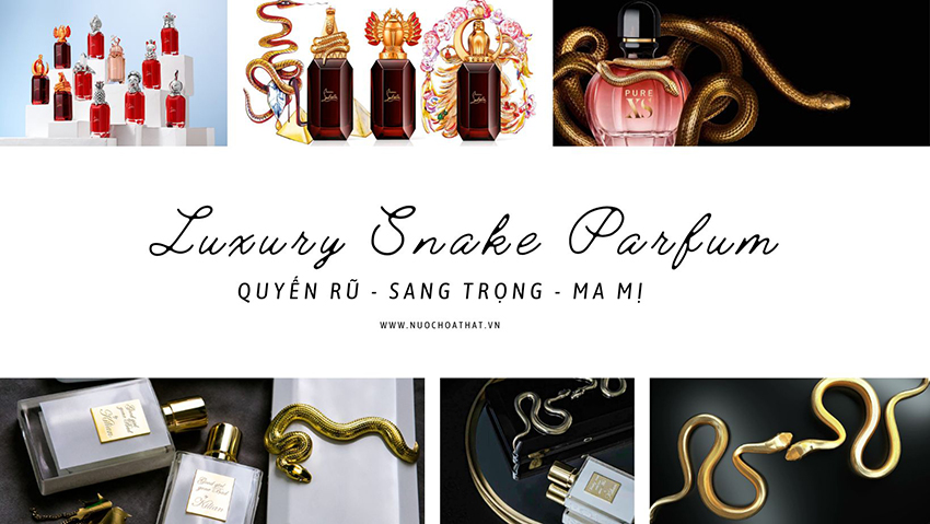 Rắn là biểu tượng lâu đời vượt không gian và thời gian, những tên tuổi sử dụng biểu tượng rắn thường ở phân khúc cao cao cấp như nút đậy hình rắn Loubuprince của Louboutin, chai Pure XS của Pacco Rabanne hay chai hộp Good Girl Gone Bad và Voulez-Vous Coucher Avec Moi của Kilian.