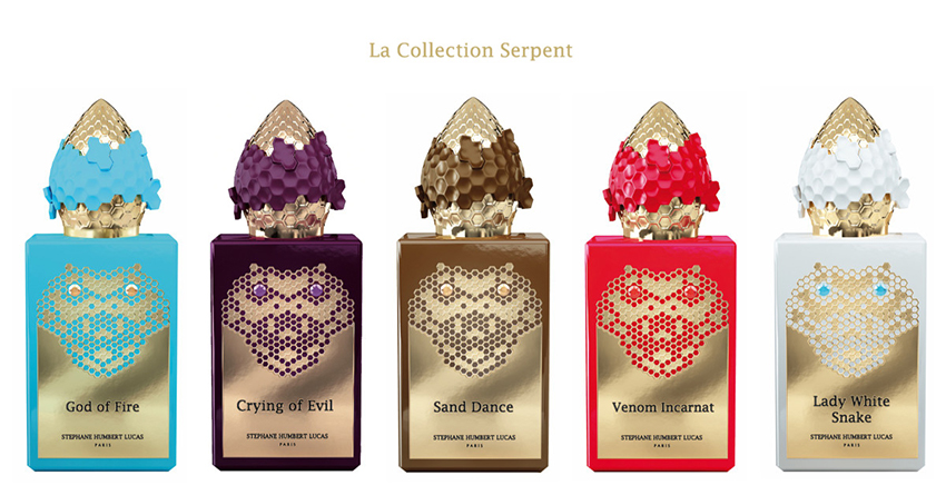 Bộ sưu tập nước hoa này minh hoa một số kỹ thuật mà các nhà chế tác dùng hình ảnh cụ thể của rắn.